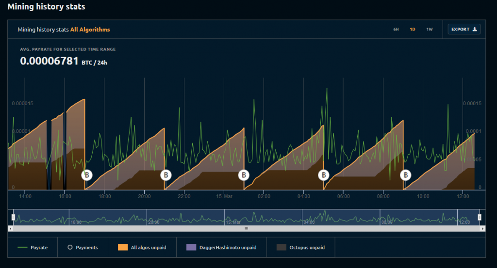 As mining program I used NiceHash. It is very popular and used by many other users. The setup was very simple and took only a few clicks. You can download different algorithms in the software. I downloaded all of them right away. Then NiceHash decides for itself which algorithm is best for you and your hardware. I mostly used Octopus and daggerhashimoto.
